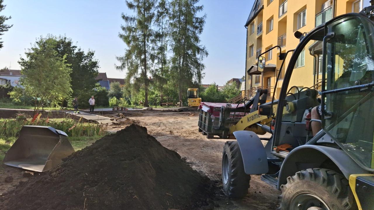 Do poloviny září bude položená dlažba a vytvořené chodníky, poté bude následovat úprava povrchu a následně výsadba okrasných trvalek a ovocných stromů.
